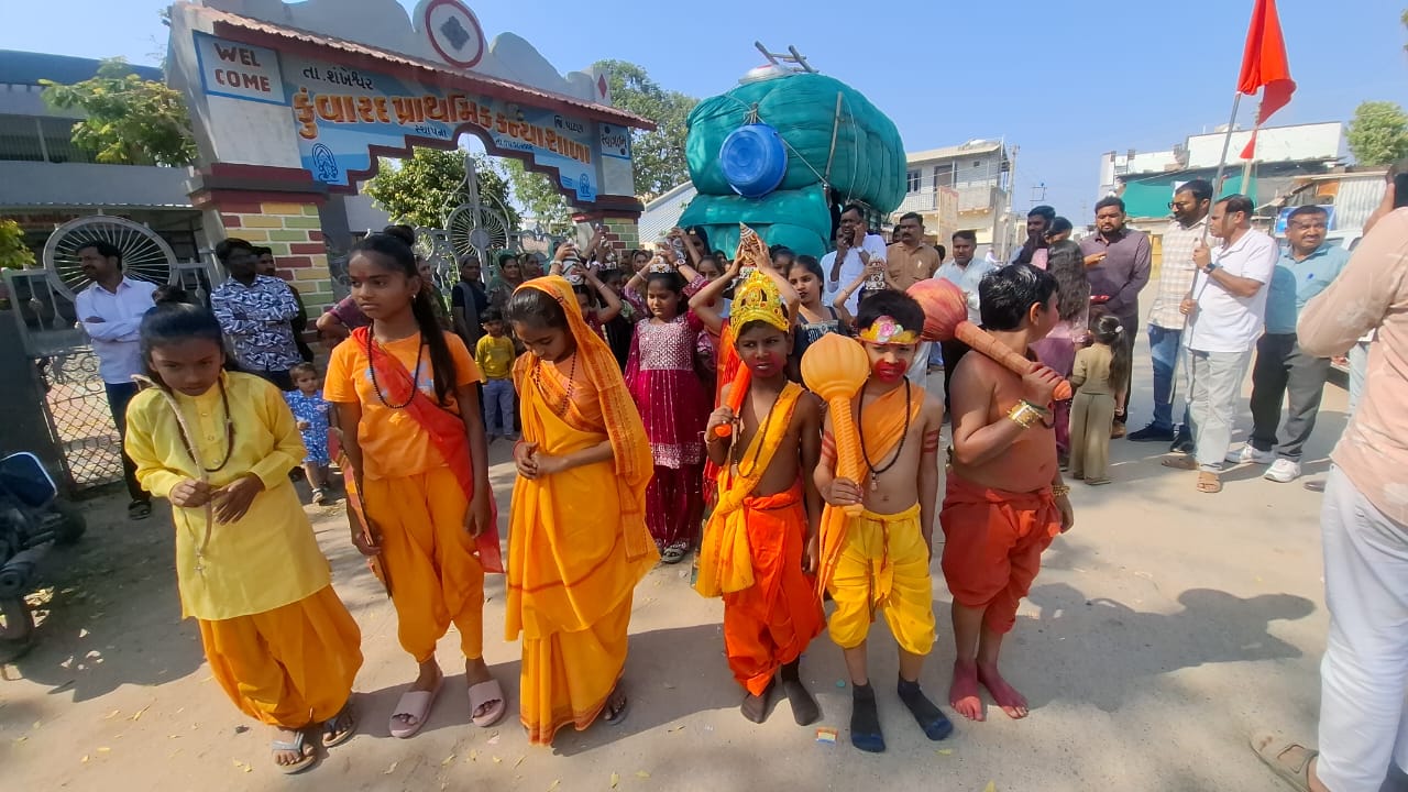 શોભાયાત્રા અને ધર્મધ્વજ વંદન કાર્યક્રમની શરૂઆતમાં ગામની બાળાઓ દ્વારા કળશ અને કુમકુમ તિલક સાથે ધર્મધ્વજનું પૂજન કરવામાં આવ્યું. ત્યારબાદ ‘જય શ્રી રામ’ના નિહાળક નાદ સાથે ભવ્ય શોભાયાત્રા કાઢવામાં આવી, જેમાં સભા સ્થળે ધર્મમય માહોલ સર્જાયો.
