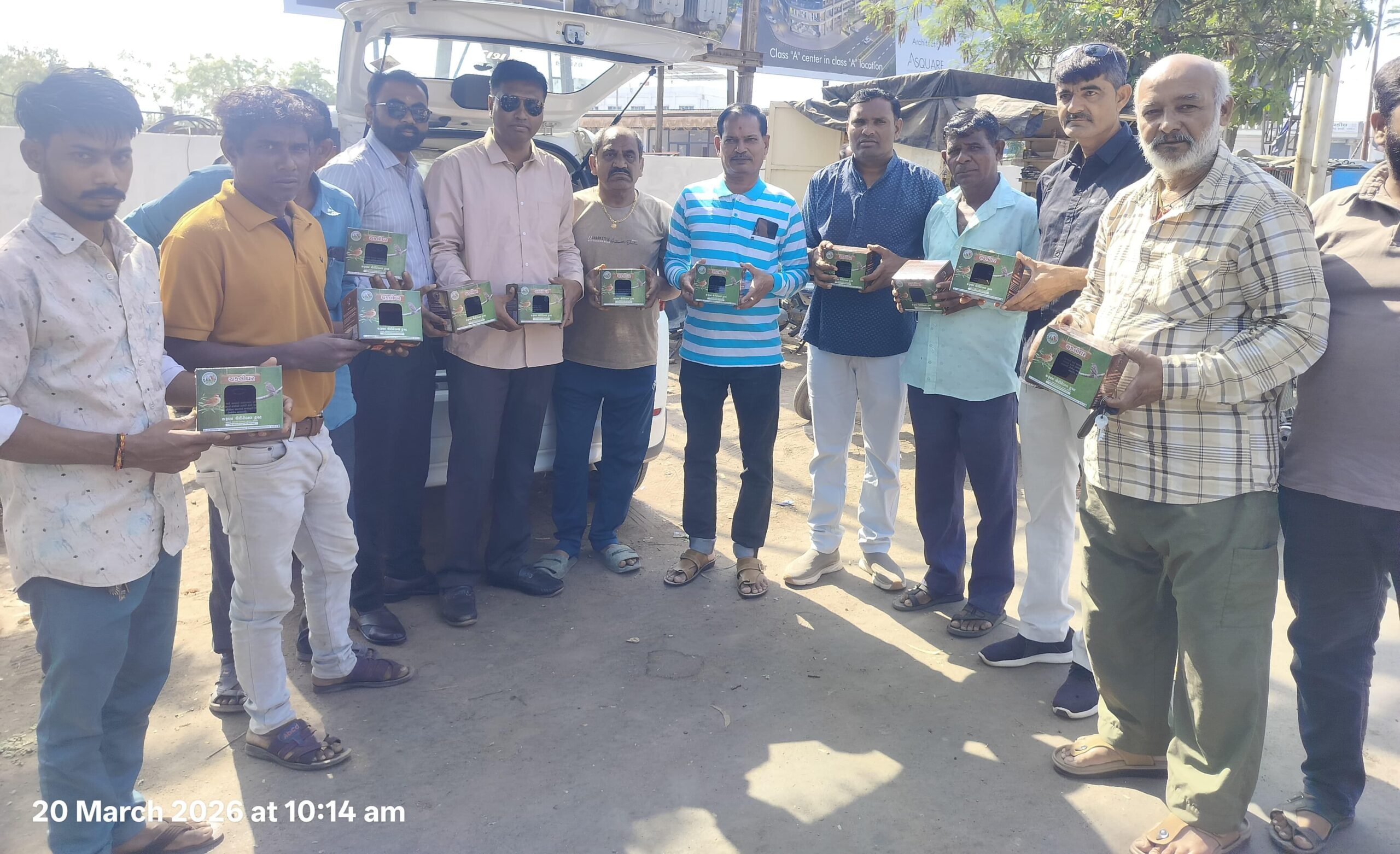 ઉદ્દેશ્ય ઉનાળાની કાળઝાળ ગરમીમાં લુપ્ત થતી જતી ચકલીઓને આશરો આપવો અને પર્યાવરણનું જતન કરવું વિતરણ અંદાજે 300 જેટલા ચકલીઘરોનું જાહેર જનતાને નિઃશુલ્ક વિતરણ કરવામાં આવ્યું હતી ઉપસ્થિત મહાનુભાવો: