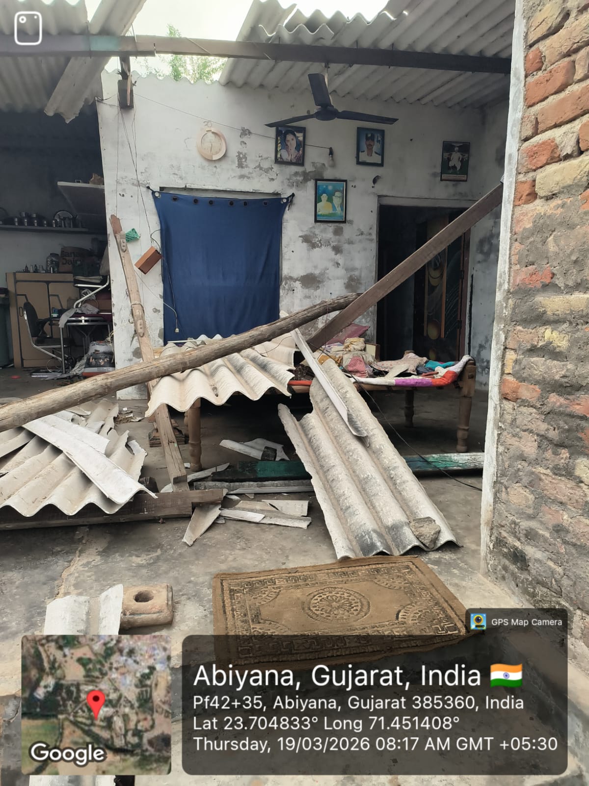 ફોટામાં સ્પષ્ટ દેખાય છે કે વાવાઝોડાની તીવ્ર અસરથી મકાનના ટીનના છાપરા ઉડી ગયા હતા, લાકડાના ઢાંચા તૂટી પડ્યા હતા અને ઘરેલું સામાન પણ બરબાદ થયો હતો. કેટલાક ઘરોમાં તો છતનો મોટો ભાગ ધરાશાયી થતા લોકો રાતોરાત ખુલ્લા આકાશ નીચે આવી ગયા હતા.
