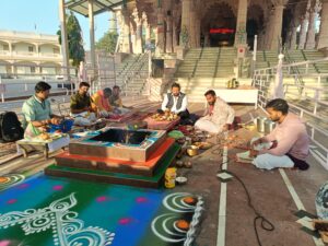 કાર્યક્રમની શરૂઆત સમાજની દીકરીઓ દ્વારા રજૂ કરાયેલ સ્વાગત ગીતથી થઈ, જેના દ્વારા સમગ્ર વાતાવરણ ભક્તિમય અને ઉર્જાવાન બની ગયું. ત્યારબાદ દુર્ગાવાહિની બહેનો દ્વારા સાહસિક તલવાર કૃતિનું પ્રદર્શન કરવામાં આવ્યું, જેને દર્શકો દ્વારા જોરદાર તાળીઓ સાથે વધાવવામાં આવ્યું.