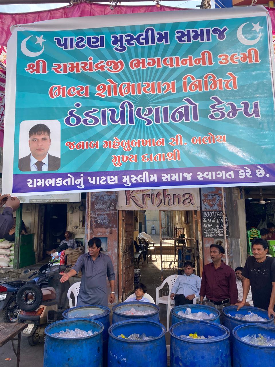પાટણમાં રામ નવમી નિમિત્તે મુસ્લિમ સમાજનો ઠંડા પીણાંનો સેવા કેમ્પ