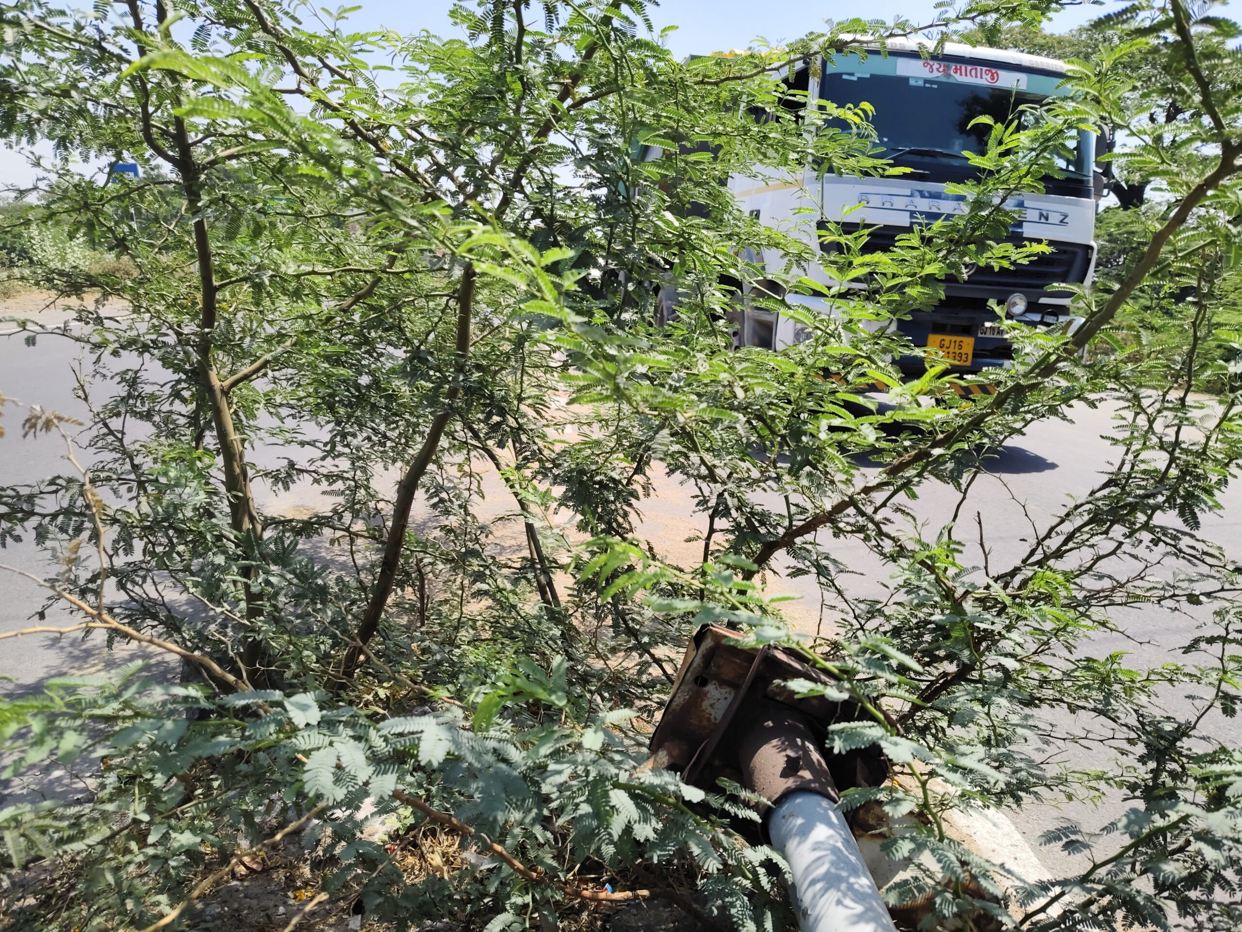 દ્રશ્યતાનો અભાવ ડિવાઇડર પર ઉગેલા જંગલી બાવળ એટલા ઊંચા થઈ ગયા છે કે સામેથી આવતા વાહનો દેખાતા નથી.