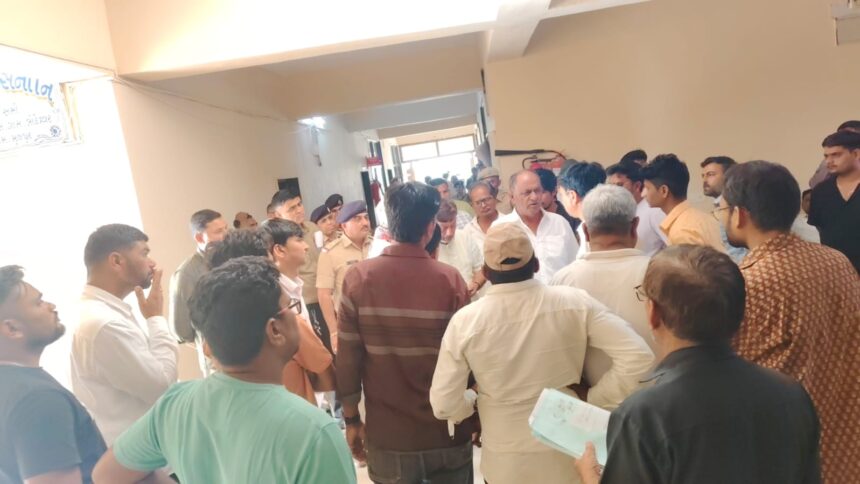 મળતી માહિતી મુજબ કોંગ્રેસ તરફથી રમેશભાઈ ઠાકોર અને રણછોડભાઈ સિંધવ બંનેએ ઉમેદવારી નોંધાવી હતી. બંને ઉમેદવારો દ્વારા રજૂ કરાયેલા મેન્ડેટને લઈ કચેરીમાં ગૂંચવણ ઊભી થઈ હતી. ચકાસણી પ્રક્રિયા દરમિયાન મેન્ડેટના માન્યતા મુદ્દે વિવાદ ઉગ્ર બન્યો હતો, જેના પગલે બંને પક્ષના સમર્થકો મોટી સંખ્યામાં કચેરી ખાતે ઉમટ્યા હતા. આ કારણે કચેરી પરિસરમાં તંગદિલીભર્યું વાતાવરણ સર્જાયું હતું.