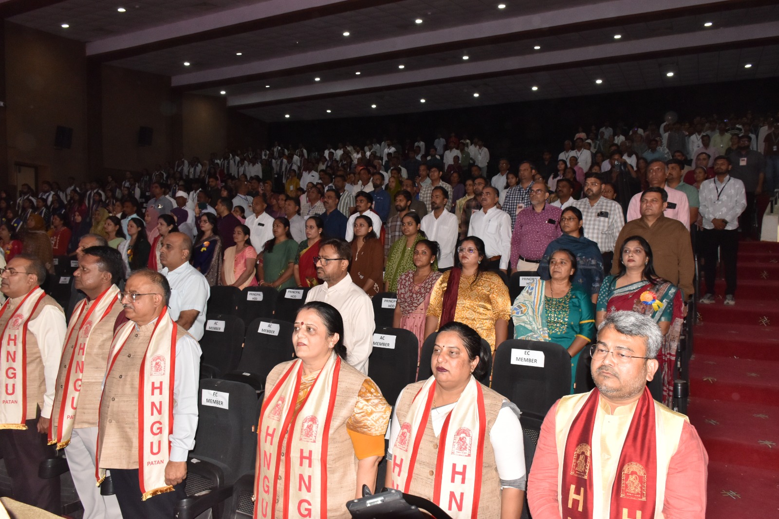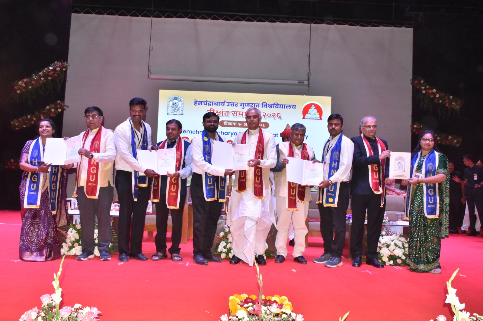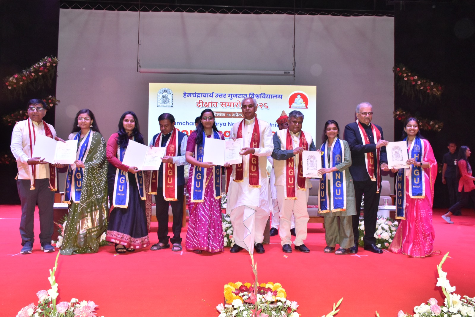 હેમચંદ્રાચાર્ય ઉત્તર ગુજરાત યુનિવર્સિટી, પાટણ ખાતે રાજ્યપાલ આચાર્ય દેવવ્રતજીના અધ્યક્ષસ્થાને પદવીદાન (દીક્ષાંત) સમારોહ- ૨૦૨૬ ભવ્ય રીતે યોજાયો હતો. મહાનુભાવોના હસ્તે દીપ પ્રાગટ્યથી કાર્યક્રમનો પ્રારંભ કરવામાં આવ્યો હતો અને રાજ્યપાલના અનુમોદન બાદ વિધિવત કાર્યક્રમ શરૂ થયો હતો.