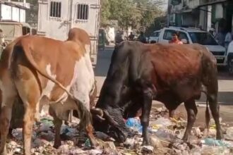 ડભોઇ શહેર રખડતા ઢોરોનો આતંક મહુડી ભાગોળ પાસે બે આખલાઓ વચ્ચે એક કલાક સુધી જંગ, વાહન ચાલકોમાં ભારે ગભરાટ