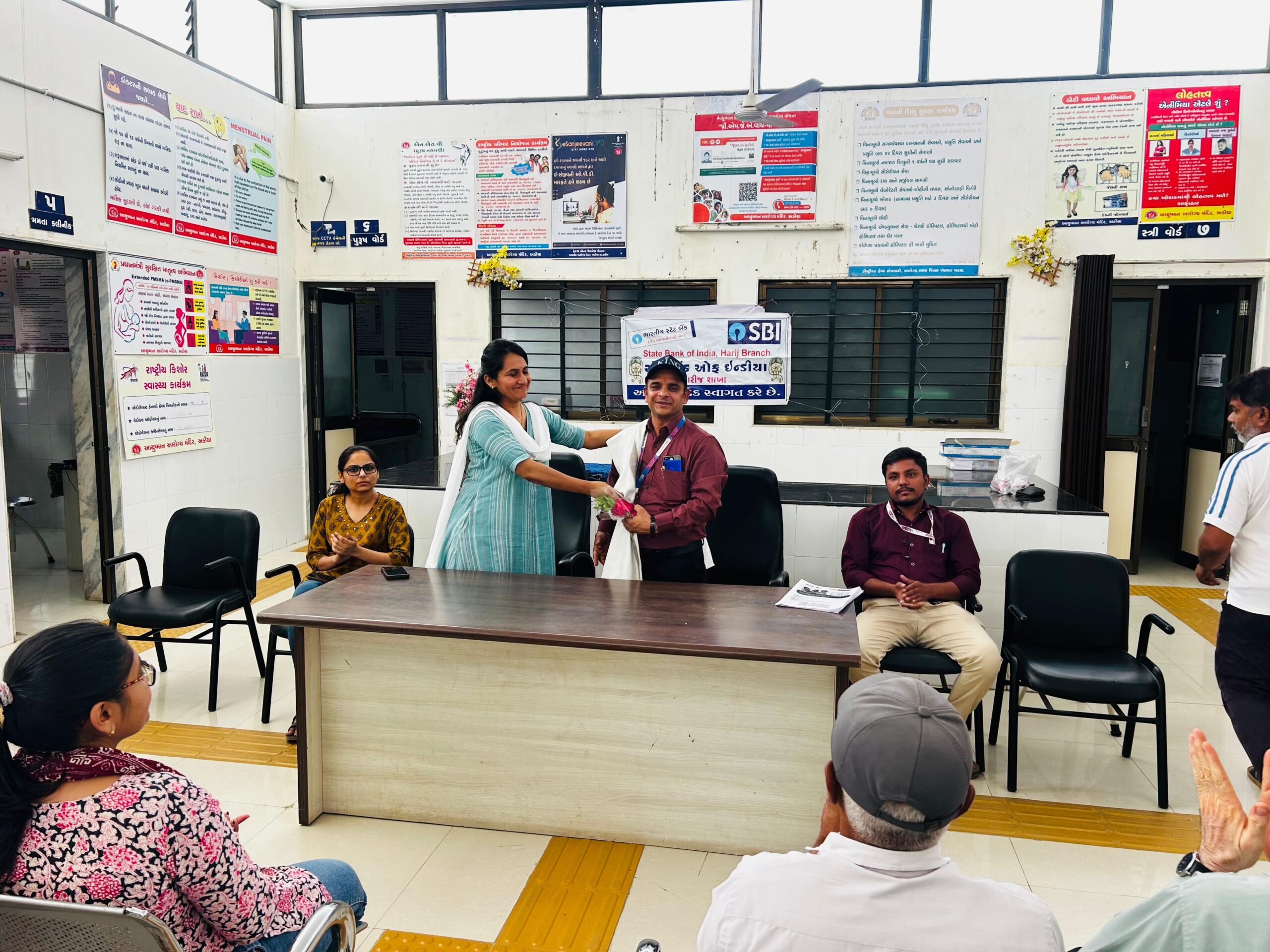 ભારતીય સ્ટેટ બેન્ક હારીજ શાખા દ્વારા તારીખ 9 /4 /2026 ના રોજ CSR (corporate soczial responsibility ) scheme અંતર્ગત કાર્યક્રમ રાખવામાં યોજાયો જેમાં SBI હારીજ શાખા ના મેનેજર વિજયભાઈ વ્યાસ ના વરદ હસ્તે એક લાખ રૂપિયાના મેડિકલ સાધનો જેમાં strecher, medicine trolly ,and aeroplane chair તાલુકા આરોગ્ય કચેરી અડિયા માં એનાયત કરવામાં આવેલ.