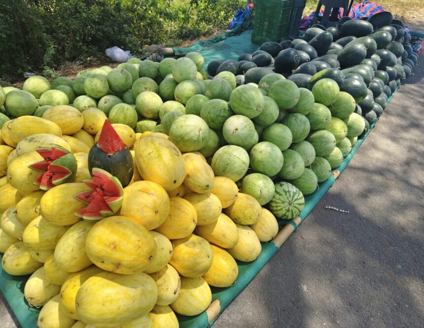 Home » News » ડભોઇ તિલકવાડા રોડ પર તરબૂચની જમાવટ પીળા તરબૂચે પ્રવાસીઓમાં જમાવ્યું આકર્ષણ